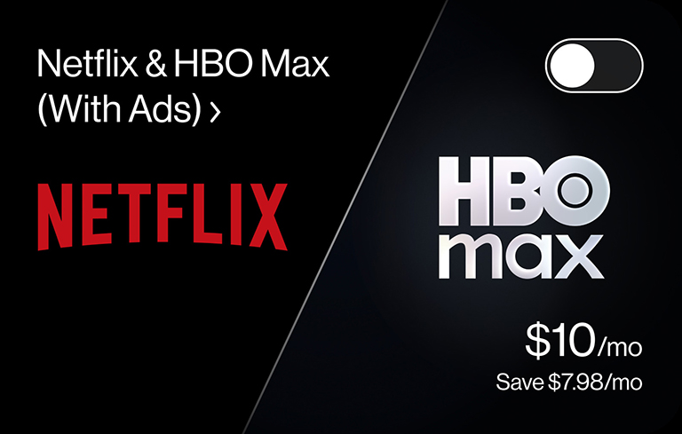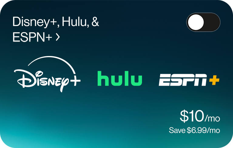 Choose what you love and save on all of it. Add Netflix & Max for $10/mo. Add Disney+, Hulu, and ESPN+ for $10/mo.